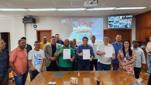 Nesta sexta-feira (20), o deputado estadual Cobra Repórter (PSD), participou da solenidade de assinatura da ordem se serviço para a construção de uma unidade do projeto “Meu Campinho”, que atenderá as regiões do Núcleo Habitacional Parigot de Souza e Jardim Catuaí, na cidade de Apucarana.