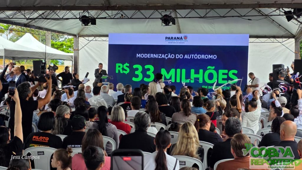 O deputado estadual Cobra Repórter (PSD) participou nesta quinta-feira (12), ao lado do governador Ratinho Junior, do anúncio de R$ 84,5 milhões em investimentos no esporte em Londrina. O pacote inclui a construção do maior Complexo de Ginástica Rítmica do Brasil, uma nova pista de skate e a modernização do autódromo da cidade.